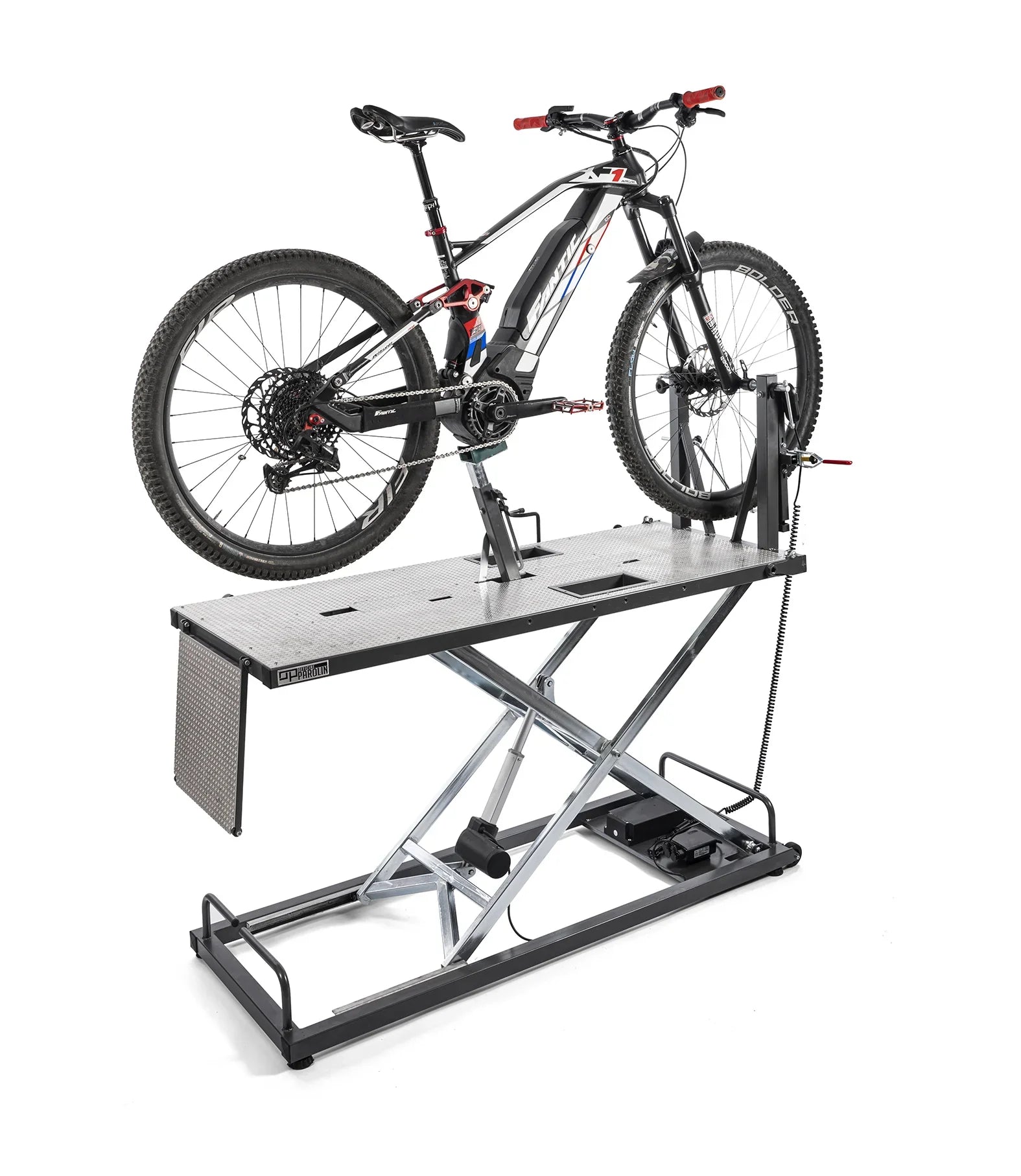 El banco de trabajo eléctrico, diseñado para mejorar la vida de cada mecánico. Ver el VÍDEO Desde la presentación de Agilis, los técnicos de Officine Parolin no han parado de seguir desarrollándose. Tras numerosos prototipos, el estudio de las necesidades del mercado, LDe la aplicación de pequeñas mejoras y tres años de pruebas nació Agilis Power. Un banco de trabajo que incorpora todos los elementos fuertes de Agilis y añade un motor eléctrico, para facilitar el mantenimiento en los Centros de Servicio más especializados. con LCon la introducción de Agilis, el esfuerzo necesario para levantar las bicicletas más pesadas se redujo drásticamente. ¡Ahora con Agilis Power el esfuerzo se reduce a cero! Gracias a la plataforma de accionamiento automático, al elemento basculante y al motor eléctrico, ahora es posible levantar la bicicleta con la superficie de trabajo hasta una altura de 80 cm sin ningún esfuerzo y sin tener que soportar NUNCA el peso de la bicicleta. en el diseño L'Agilis Power no ha dejado nada al azar, se ha cuidado cada pequeño detalle para ofrecer a los Centros de Servicio mecánico un producto robusto y ergonómico, donde se puede realizar cualquier tipo de mantenimiento de la bicicleta. El motor eléctrico permite levantar completamente la encimera en tan solo 8 segundos y adaptarla Laltura para realizar ajustes rápidos, pudiendo trabajar cada componente a la altura adecuada. El motor eléctrico se alimenta mediante un cable que se puede conectar a una toma de corriente común. Es posible tener L'Agilis Power en la versión completa con batería autónoma que permite trabajar sin conexión eléctrica, para una autonomía estimada de dos días de uso intenso. Creado para solucionar el problema del peso de las bicicletas eléctricas, con Agilis Power es posible trabajar en cualquier tipo de bicicleta. De hecho, en el kit de accesorios, gracias al sistema patentado de fijación de la horquilla y a los casquillos adaptadores, es posible realizar el mantenimiento de bicicletas eléctricas, de carreras, de ciudad y de cualquier modelo de MTB. El sistema de fijación de la horquilla y los casquillos adaptadores son los mismos que los de Agilis, con algunas pequeñas mejoras, fruto del feedback recogido a lo largo del tiempo. El centro de las ruedas en la parte delantera, las bandejas colocadas directamente sobre la superficie de trabajo y las ruedas integradas para permitir un fácil desplazamiento son detalles que dan un valor añadido a Agilis Power, convirtiéndolo en el compañero de trabajo perfecto para todos los talleres especializados. Mira el VÍDEO Accesorios disponibles (incluidos en la versión opcional completa): - soporte para manillar - soporte e-city - portaherramientas - alfombrilla